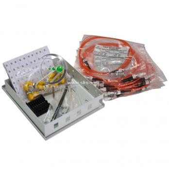 Кросс настенный Микро, укомплектованный, 8 портов ST/UPC, 50/125 мкм представляет собой компактное универсальное устройство, монтируемое на стену или любую иную плоскую поверхность, предназначен для подключения волоконного оптического кабеля и оптических шнуров в волоконно-оптических линиях связи, а также их маркировки.