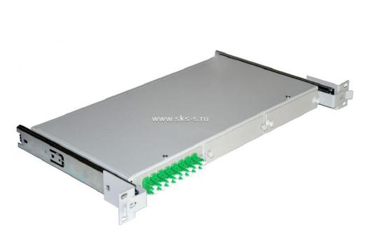 NTSS-RsFOB-1U-8-2LC/U-503-SP1.5G1A Кросс 19" выдвижной, предсобранный 1U, 8 портов LC/UPC duplex ОМ3, 50/125 мкм ОМ3 представляет собой компактное универсальное устройство блочного исполнения высотой от 1U до 4U (1U = 44,45 мм), монтируемое в 19-дюймовый конструктив. Изделие имеет жесткий металлический корпус, на который нанесено защитное покрытие по технологии порошковой окраски, что обеспечивает надежную защиту от внешних воздействий.