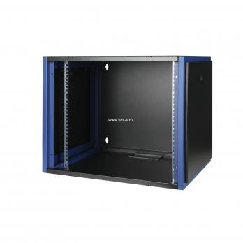 Варианты комплектации передней двери: тонированное ударопрочное стекло. Боковые стенки: быстросъемные. Возможна установка цилиндрического замка (опция). Угол открытия передней двери 115°. Задняя стенка сплошная с 4-мя точками для крепления на стену, не съемная, является частью конструктива. Возможность установки щеточного ввода крышу и дно шкафа. Степень защиты по IP: 20. Климатическое исполнение от -10 до +75 °С УХЛ 4.2 по ГОСТ 15150–69 Цветовое исполнение корпуса: черный RAL 9005. Цвет рамы: RAL 5026. В комплект поставки входит: 2 шт. 19" оцинкованных монтажных направляющих; передняя дверь; 2 боковые рамы; задняя стенка; 2 боковые быстросъемные стенки; верх и дно шкафа; щеточный кабельный ввод; комплект крепежа для сборки; инструкция по сборке; паспорт на изделие. Конструктив поставляется в разобранном виде в картонной упаковке. Количество мест: 1 *- достигается при комплектации дополнительной парой 19” монтажных направляющих. Базовая распределенная нагрузка 50 кг.